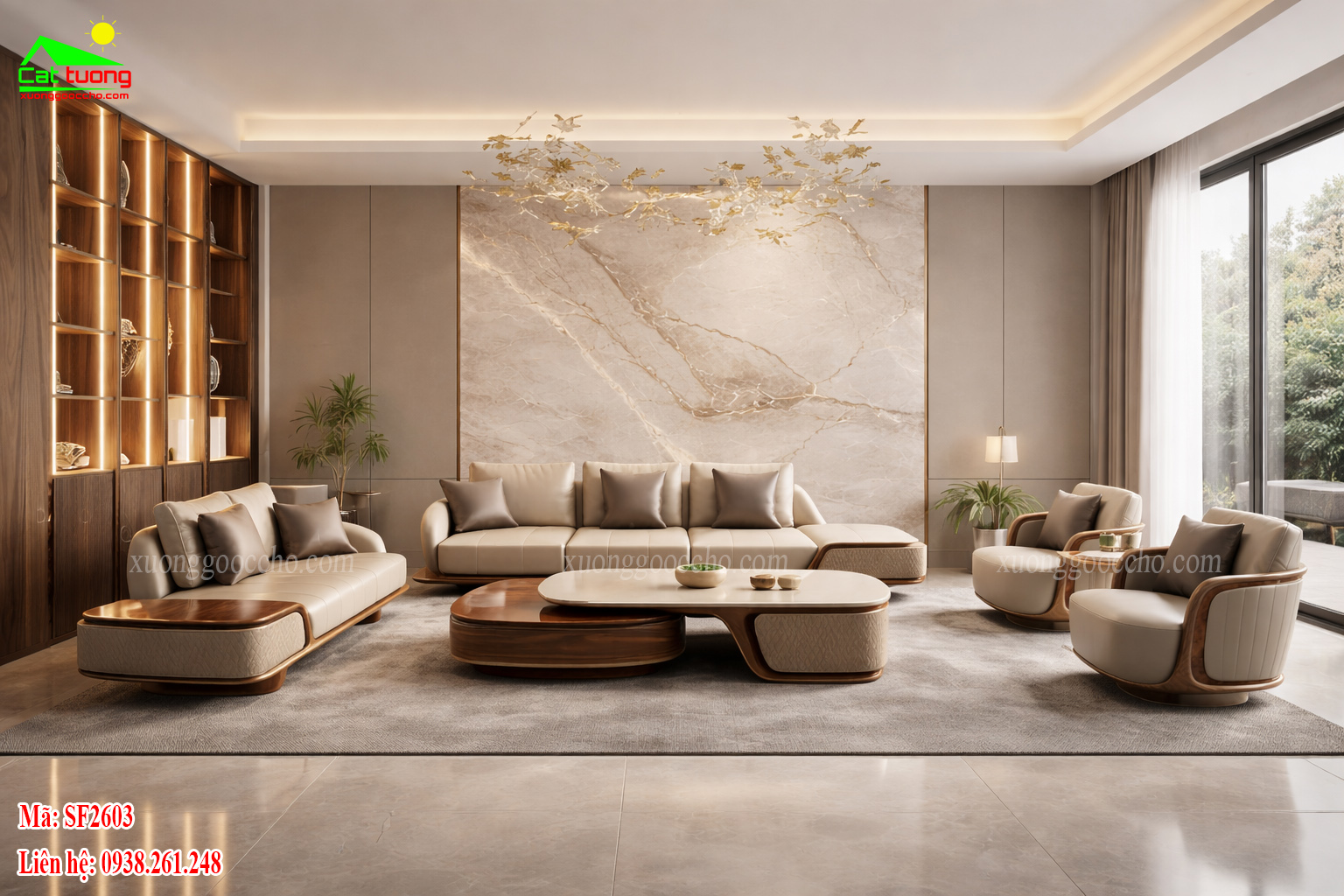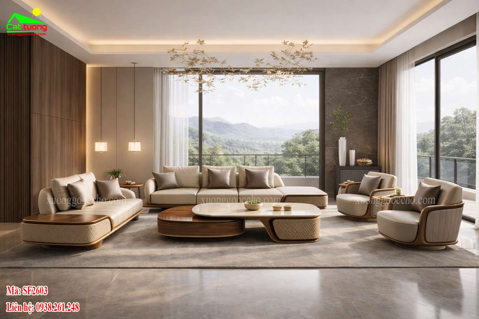 Sofa gỗ óc chó SF2603 cho phòng khách rộng