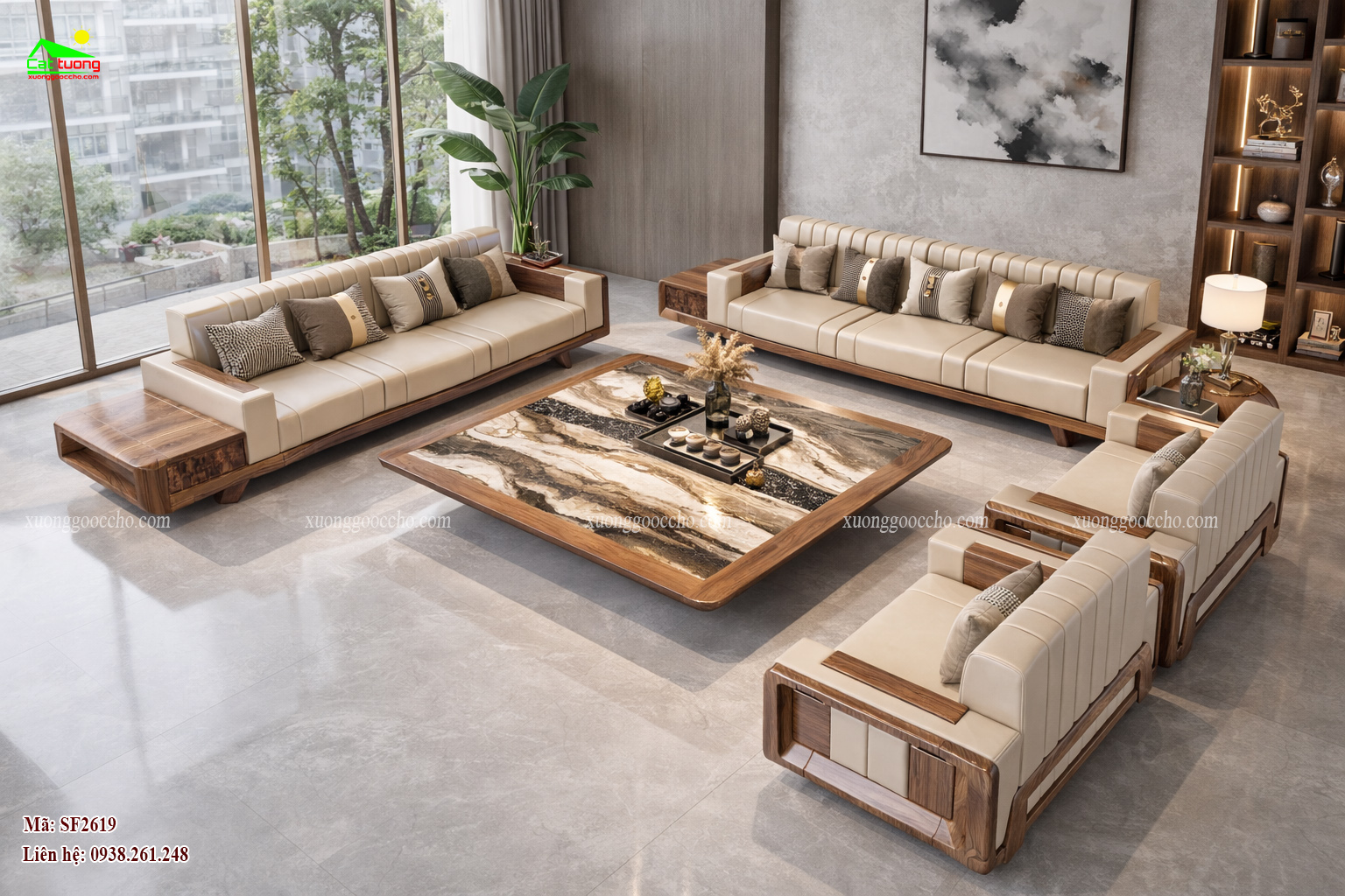 Sofa gỗ óc chó SF2619