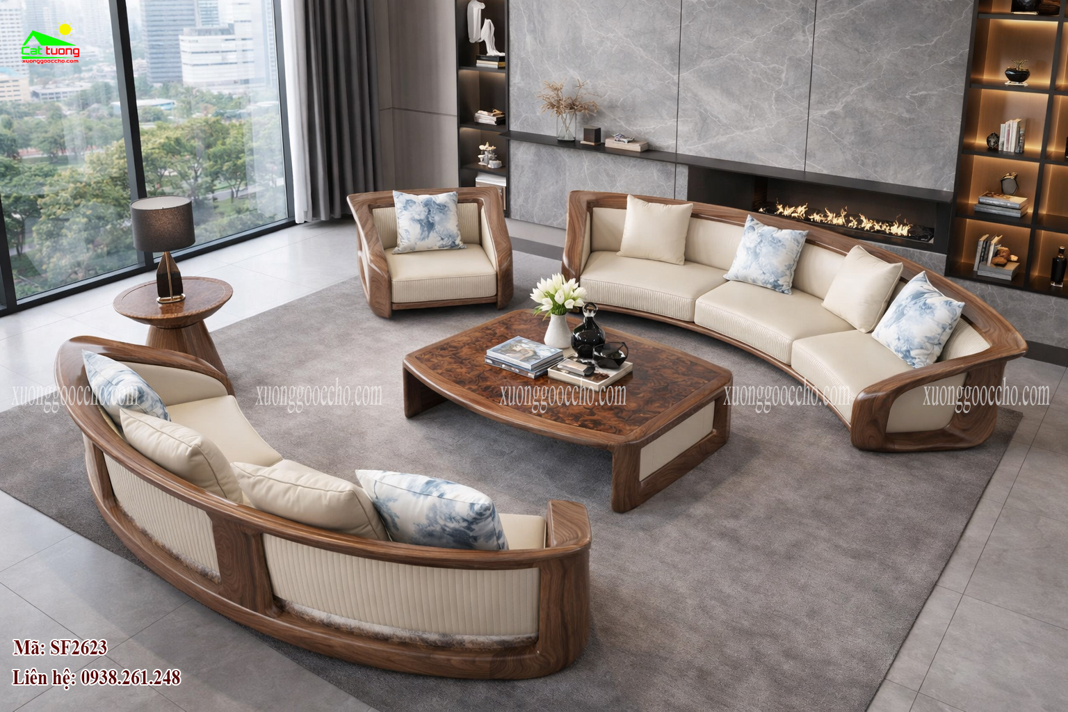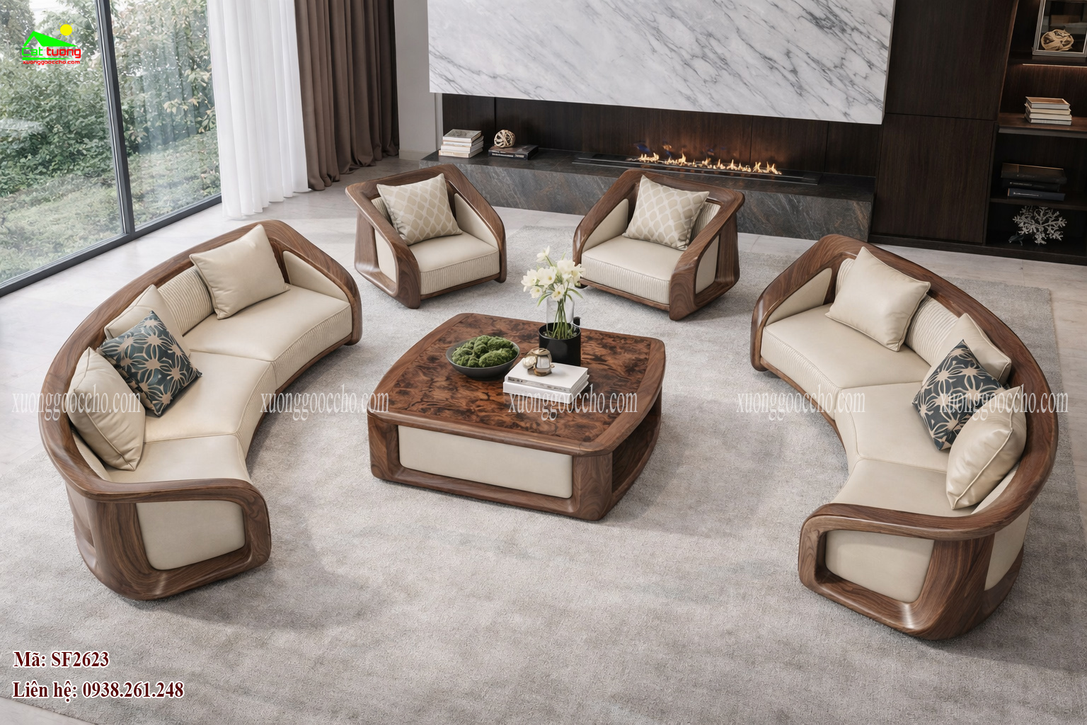 Sofa gỗ óc chó SF2623