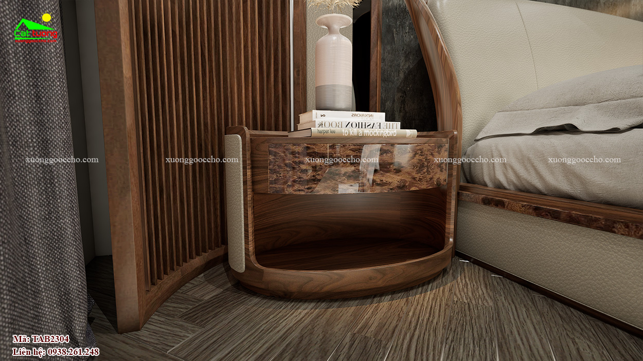 Táp đầu giường gỗ có chó TAB2304 hình elip mang phong cách hiện đại kế hợp gỗ óc chó và da bò cao cấp