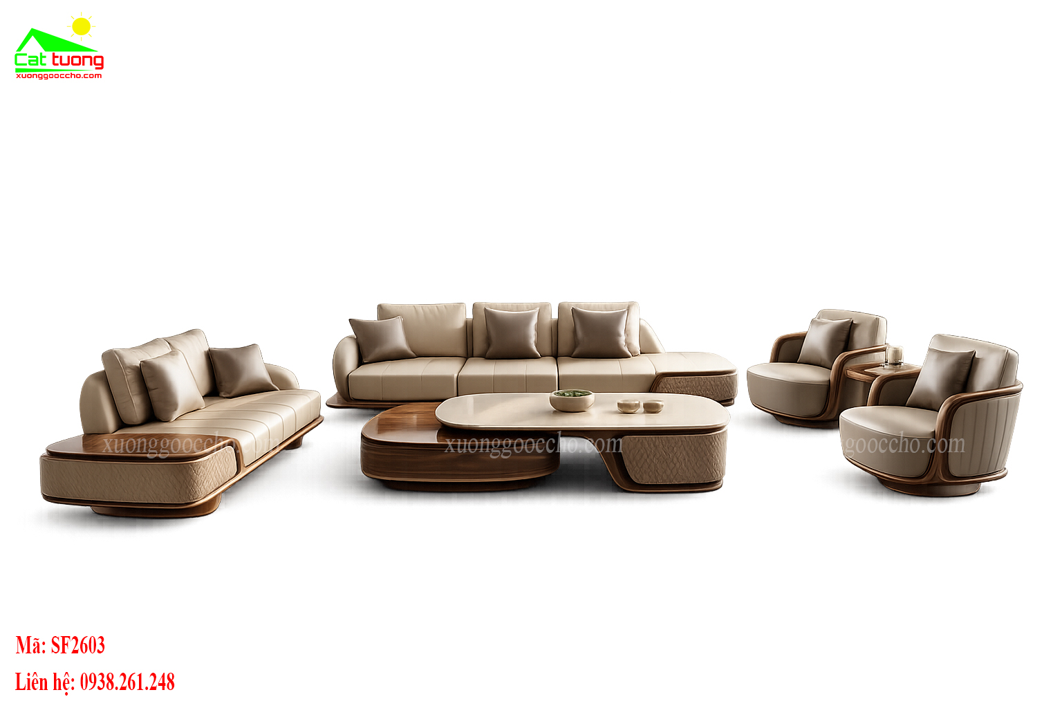 Sofa gỗ óc chó SF2603 cho phòng khách rộng